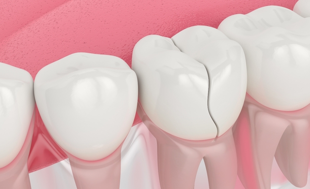 4) 치아의 뿌리쪽에 가깝게 부러짐